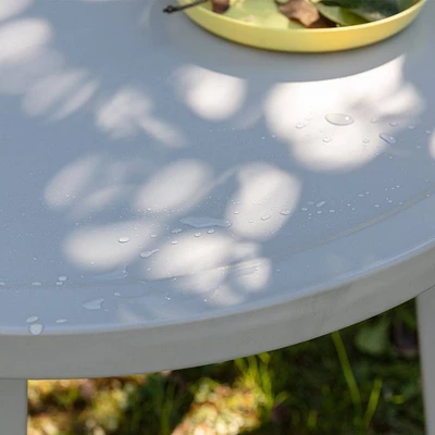 - INDOOR/OUTDOOR USE: Industrial style table and chairs feature a powder-coated white metal finish for indoor and outdoor use