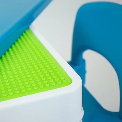 - Includes smooth removable table cover, 2 chairs and 100 building blocks