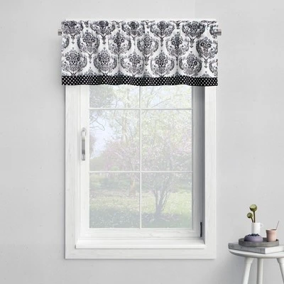 - This Bacati 10-piece Crib Set Includes Reversible Comforter/Playmat (33 x 43 inches), Two Crib fitted sheets (52 x 28 x 6 inches), Crib Skirt/Dust ruffle (13 inch drop) Diaper Stacker (holds more than 30 newborn diapers), Window Valance (15 h x 56 w inches with 1.75 inch Rod Pocket), 3 pc Wall Hangings Set and Musical Mobile in fun, colorful and signature prints in 100 percent cotton 200 Thread Count percale fabrics. Designed in United States by Experienced Designers. Many coordinating items available to purchase separately in this Bacati Classic Damask Black/Grey/White Bedding Collection.