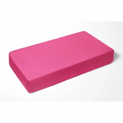 - This Bacati 3-piece Crib Set Includes Reversible Comforter/Playmat (33 x 43 inches), Crib fitted sheet (52 x 28 x 6 inches) and Crib Skirt/Dust ruffle (13 inch drop) in fun, colorful and signature prints in 100 percent cotton 200 Thread Count percale fabrics. Designed in United States by Experienced Designers. Many coordinating items available to purchase separately in this Bacati Damask Pink Fuschia Chocolate Bedding Collection.