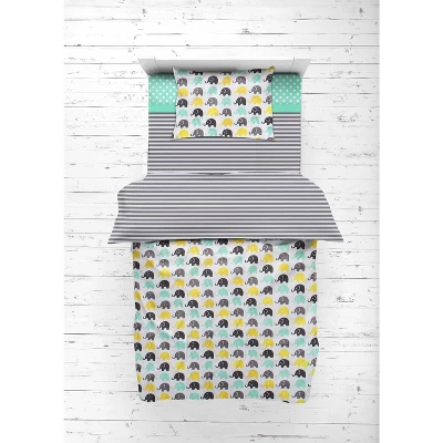 Bacati – Elephants Mint/Yellow/Gray 4 Pc Toddler Bedding Set