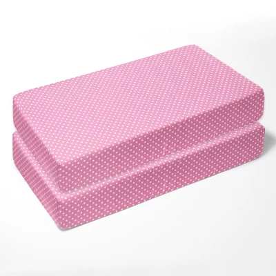 - This Bacati 10-piece Crib Set Includes Reversible Comforter/Playmat (33 x 43 inches), Two Crib fitted sheets (52 x 28 x 6 inches), Crib Skirt/Dust ruffle (13 inch drop) Diaper Stacker (holds more than 30 newborn diapers), Window Valance (15 h x 56 w inches with 1.75 inch Rod Pocket), 3 pc Wall Hangings Set and Musical Mobile in fun, colorful and signature prints in 100 percent cotton 200 Thread Count percale fabrics. Designed in United States by Experienced Designers. Many coordinating items available to purchase separately in this Bacati Elephants Pink/Fuschia/Gray Bedding Collection.