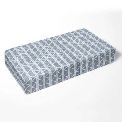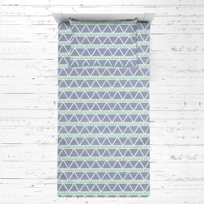 Bacati – Noah Large Triangles Mint Navy Muslin 3 Pc Toddler Bed Sheet Set