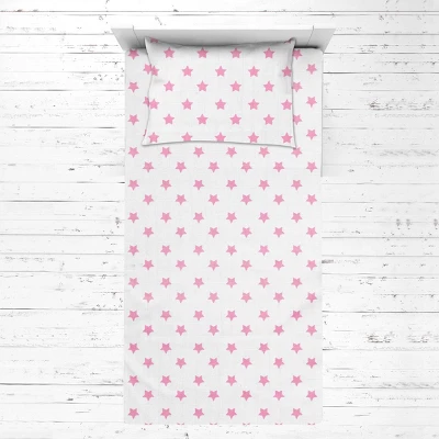Bacati – Stars Pink Muslin 3 Pc Toddler Bed Sheet Set 100 Percent Cotton