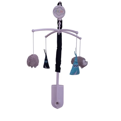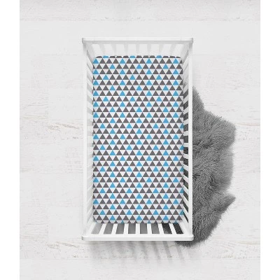 - This Bacati 10-piece Crib Set Includes Reversible Comforter/Playmat (33 x 43 inches), Two Crib fitted sheets (52 x 28 x 6 inches), Crib Skirt/Dust ruffle (13 inch drop) Diaper Stacker (holds more than 30 newborn diapers), Window Valance (15 h x 56 w inches with 1.75 inch Rod Pocket), 3 pc Wall Hangings Set and Musical Mobile in fun, colorful and signature prints in 100 percent cotton 200 Thread Count percale fabrics. Designed in United States by Experienced Designers. Many coordinating items available to purchase separately in this Bacati Woodlands Aqua/Navy/Gray Bedding Collection.