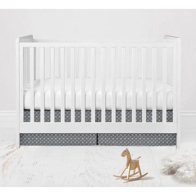 - This Bacati 3-piece Crib Set Includes Reversible Comforter/Playmat (33 x 43 inches), Crib fitted sheet (52 x 28 x 6 inches) and Crib Skirt/Dust ruffle (13 inch drop) in fun, colorful and signature prints in 100 percent cotton 200 Thread Count percale fabrics. Designed in United States by Experienced Designers. Many coordinating items available to purchase separately in this Bacati Woodlands Beige/Gray Bedding Collection.
