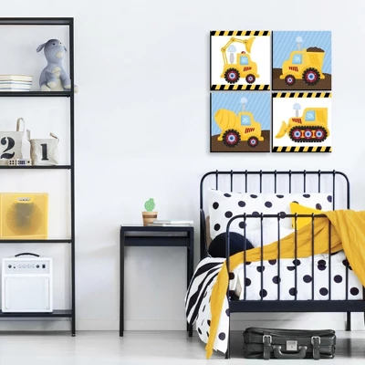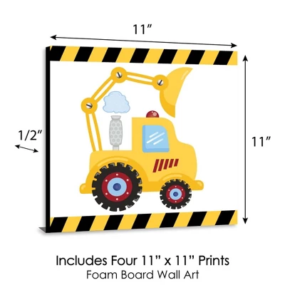 Construction Truck Wall Art Set INCLUDES 4 ready-to-hang construction themed panels and non-marking wall mounts for easy hanging. Construction Truck artwork is perfect for home decor. Construction Truck Kids Room, Nursery Decor and Home Decor SIZE each 10 inches high x 7.5 inches wide x .5 inches thick. Construction site lightweight art prints will arrive ready to use – no frame needed. The black edge gives each print a modern, finished look. EASY TO HANG: Simply attach a non-marking wall mount (included) to each corner of a Construction Truck art panel and press to hang in desired location. Wall mounts are repositionable, so you can redesign your artwork display at any time. PREMIUM HOME DECOR: 4-piece Construction Truck Wall Art Set is professionally printed on thick material with a black edge. You will not need to frame this set of construction zone room decor. Each standout print is ready to hang and will add a contemporary touch to any room. MADE IN THE USA: Construction Truck Room Decor is designed and manufactured at our Wisconsin facility using materials that are Made in the USA.