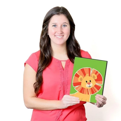 Jungle Party Animals Wall Art Set INCLUDES 3 ready-to-hang jungle themed panels and non-marking wall mounts for easy hanging. Jungle Party Animals artwork is perfect for a nursery, kids room or playroom. Jungle Party Animals Wall Art & Kids Room Decor SIZE each 10 inches high x 7.5 inches wide x .5 inches thick. Zoo animal lightweight art prints will arrive ready to use – no frame needed. The black edge gives each print a modern, finished look. EASY TO HANG: Simply attach a non-marking wall mount (included) to each corner of a Jungle Party Animals art panel and press to hang in desired location. Wall mounts are repositionable, so you can redesign your artwork display at any time. PREMIUM HOME DECOR: 3-piece Jungle Party Animals Wall Art Set is professionally printed on thick material with a black edge. You will not need to frame this set of jungle animals room decor. Each standout print is ready to hang and will add a contemporary touch to any room. MADE IN THE USA: Jungle Party Animals Nursery Wall Art & Kids Room Decor is designed and manufactured at our Wisconsin facility using materials that are Made in the USA.