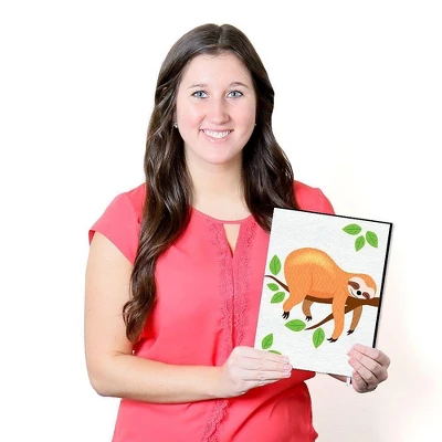 Let’s Hang – Sloth Wall Art Set INCLUDES 3 ready-to-hang sloth themed panels and non-marking wall mounts for easy hanging. Let’s Hang – Sloth artwork is perfect for a nursery, kids room or playroom. Let’s Hang – Sloth Wall Art & Kids Room Decor SIZE each 10 inches high x 7.5 inches wide x .5 inches thick. Sloth lightweight art prints will arrive ready to use – no frame needed. The black edge gives each print a modern, finished look. EASY TO HANG: Simply attach a non-marking wall mount (included) to each corner of a Let’s Hang – Sloth art panel and press to hang in desired location. Wall mounts are repositionable, so you can redesign your artwork display at any time. PREMIUM HOME DECOR: 3-piece Let’s Hang – Sloth Wall Art Set is professionally printed on thick material with a black edge. You will not need to frame this set of sloth room decor. Each standout print is ready to hang and will add a contemporary touch to any room. MADE IN THE USA: Let’s Hang – Sloth Nursery Wall Art & Kids Room Decor is designed and manufactured at our Wisconsin facility using materials that are Made in the USA.