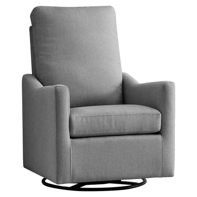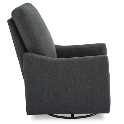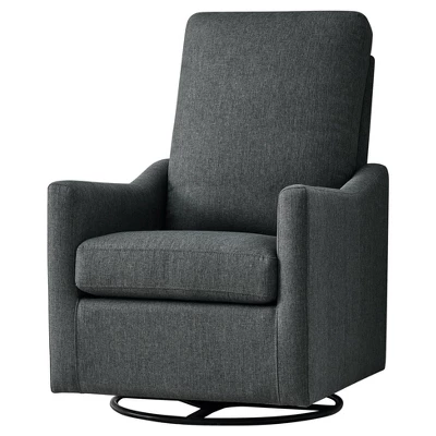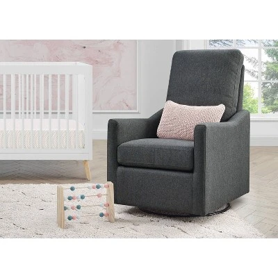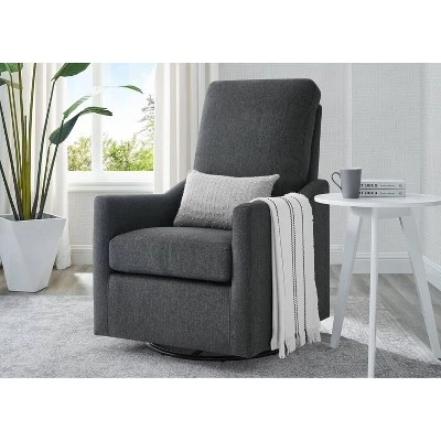 Designed for exceptional comfort, the Adley Nursery Glider Swivel Rocker Chair by Delta Children glides and swivels 360-degrees, making it the most soothing spot to lull baby to sleep. The chairโs whisper quiet movements ensure a serene environment while the soft seat cushion (6″” thick), padded armrests and backrest allow you to sit comfortably for hours. Its modern shape makes it an easy addition to your nursery or living room once your baby gets older. Assembled dimensions: 26.75″”W x 37.5″”D x 40.25″”H. Available in three colors: Charcoal, French gray and Cream. Removable seat cushion for easy cleaning. Delta Children was founded around the idea of making safe, high-quality children’s products affordable for all families. They know there’s nothing more important than safety when it comes to your child’s space. That’s why all Delta Children products are built with long-lasting materials to ensure they stand up to years of jumping and playing. Plus, they are rigorously tested to meet or exceed all industry safety standards.