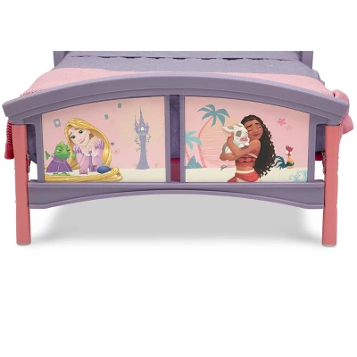 Your little one will relax like royalty with this Disney Princess Plastic Toddler Bed by Delta Children. Featuring colorful decals of everyone’s favorite Disney princesses, Ariel, Rapunzel and Moana, this kids’ toddler bed ensures each night ends happily ever after. The bed’s low mattress height and attached guardrails make it the best option for your child’s first big-kid bed, giving them the independence they crave while keeping them safe throughout the night. Get this toddler bed today and bring home the magic of Disney! Bedding and mattress not included.