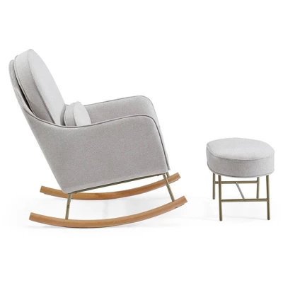 - DESIGN ACCENTS: Metal legs add modern style to any space | Pair this ottoman with the Ella Rocker | Use ottoman in your nursery, living room, master bedroom or man cave