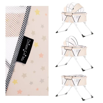 Dream On Me introducing Karley Plus! An upgrade to our most popular and multiple award winner Karley Bassinet which is designed for portability and small spaces. This JPMA certified bassinet is just the right size bassinet for your newborn’s first months. Weighing only 14 pounds, its lightweight design, compact and convenient frame with mattress pad provides restful sleep at home and away. Featuring a streamlined design with a firm, flat sleep surface and mesh side panels for reassuring visibility and breathability while the optional canopy adds design features for any situation – indoors or out. It’s sturdy metal legs snap on in seconds for easy setup. This product is recommended for babies up to 25 lbs. or 6 months of age, or whenever your baby begins to show signs of pushing up to hands and knees. Let the Dream On Me Karley Plus comfort your baby all night long right by your side.