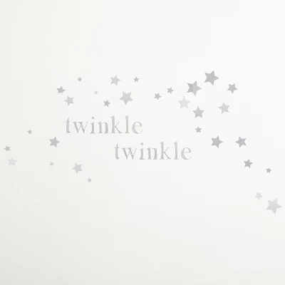 - ADORABLE SOPHISTICATED, CLASSIC THEME: You will think that you are in living on a cloud with our adorable sophisticated, classic look. The fitted sheet features a grey and blush coin medallion print set off by a tiered, ruched bed skirt. The quilt features soft, billowy cascading ruffles. The large nursery wall decal depicts silvery stars and the words TWINKLE TWINKLE, completing your sophisticated, classic nursery look.