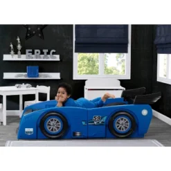 - SLEEK RACE CAR LOOK: Bed resembles race car with its aerodynamic spoiler, 3D accents and decals that accentuate the headlights, wheels and exhaust | Easy-to-apply decals are included