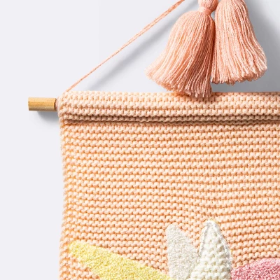 Add a magical, adventurous vibe to your child’s nursery with this Unicorn Fiber Wall Art from cloud island™. The vertical wall decor features a woven unicorn face on the front for a fun style, along with tassels detailing at the top for charming texture and flair. It features a string attached to the wooden dowel at the top, giving you a compelling fixture that’s easy to hang on any wall.