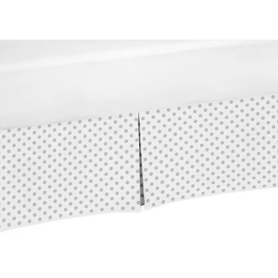 This Gray and White Polka Queen Bed Skirt is designed to coordinate with the Sweet Jojo Designs Pink and Gray Watercolor Floral Bedding Collection by Sweet Jojo Designs. This skirt, or dust ruffle, adds the finishing touch while conveniently hiding under-the-bed storage. It features a shabby chic grey mini polka dot print brushed microfiber. It measures 80 in. x 60 in. with a 14 in. drop.